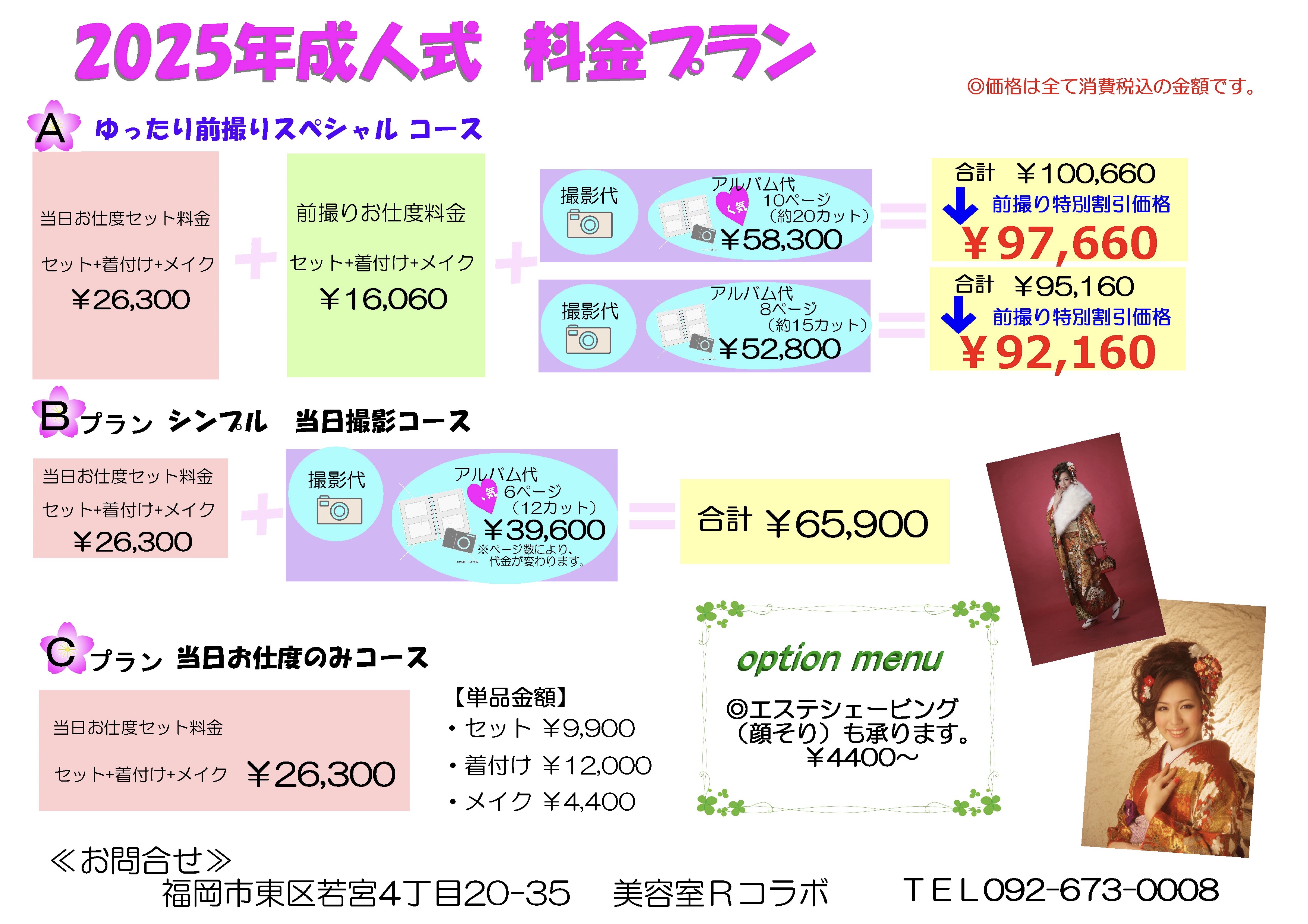 ex)セット&メイク&着付 25,300円(税込)